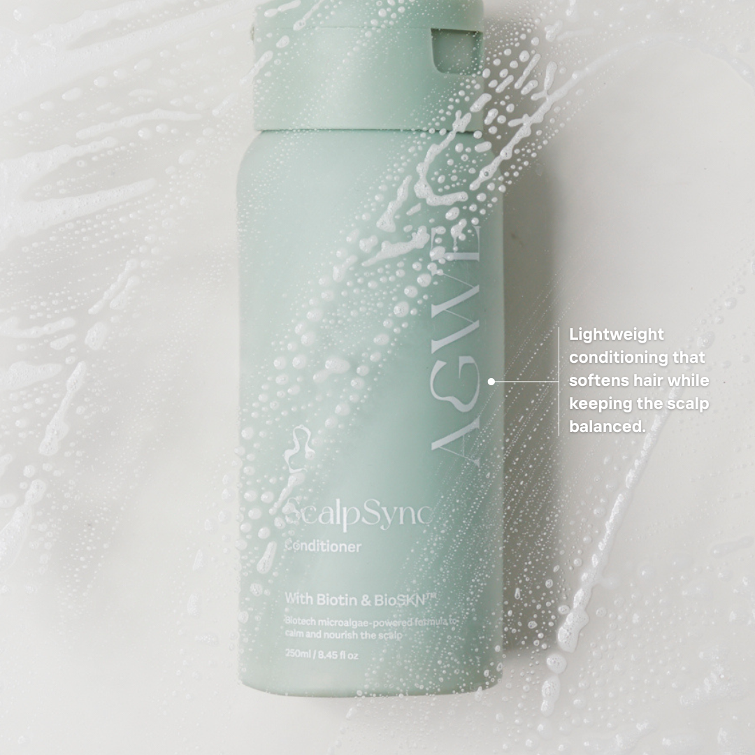 ScalpSync Conditioner is designed to care for both the scalp and the hair. It provides lightweight conditioning to the lengths while supporting scalp comfort and balance after cleansing. The goal is to maintain a comfortable scalp environment while leaving hair soft, smooth, and manageable.