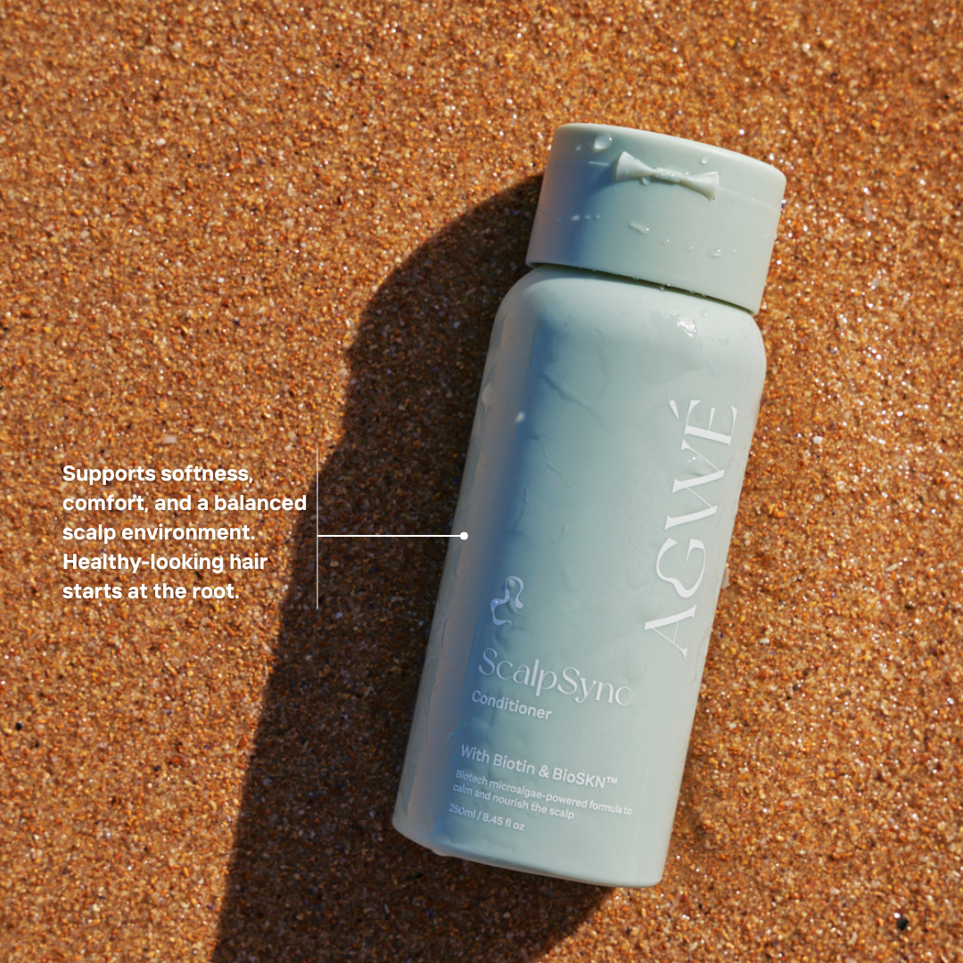 ScalpSync Conditioner was created to solve a problem most conditioners ignore: the need to deeply condition hair without overwhelming the scalp. At the core of the formula is BioSKN+, our proprietary scalp-support complex, paired with Biotin, Panthenol, quinoa proteins, and a blend of nourishing plant oils. Together, they deliver lightweight hydration and conditioning while supporting scalp comfort and balance.